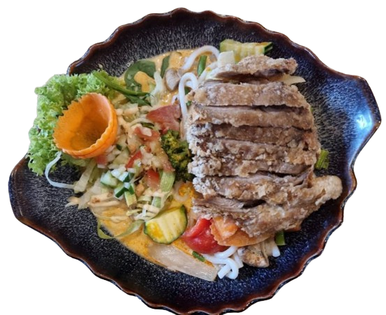 Delikate Suppe mit natürlichem vietnamesischen Aroma, Kokosmilch, Champignons, Zucchini, Tomaten, Zwiebeln, vietnamesischen Kräutern